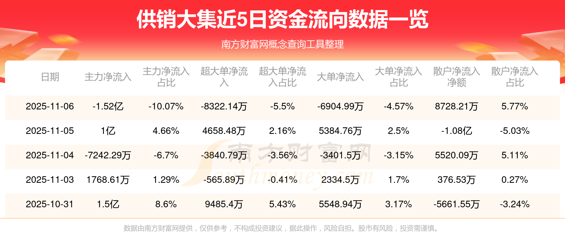 11月6日消息,供銷大集11月6日主力資金凈流出1.52億元,超大單資金凈流出8322.14萬(wàn)元,大單資金凈流出6904.99萬(wàn)元,散戶資金凈流入8728.21萬(wàn)元。