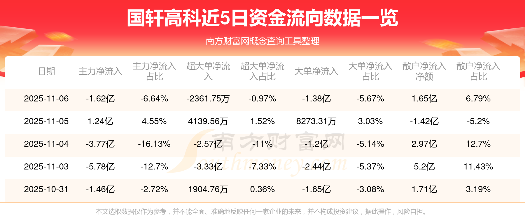11月6日消息,國軒高科11月6日主力凈流出1.62億元,超大單凈流出2361.75萬元,大單凈流出1.38億元,散戶凈流入1.65億元。