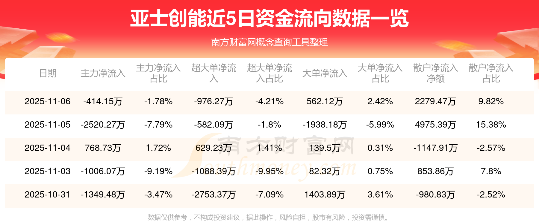 11月6日該股主力凈流出414.15萬元,超大單凈流出976.27萬元,大單凈流入562.12萬元,中單凈流出1865.32萬元,散戶凈流入2279.47萬元。