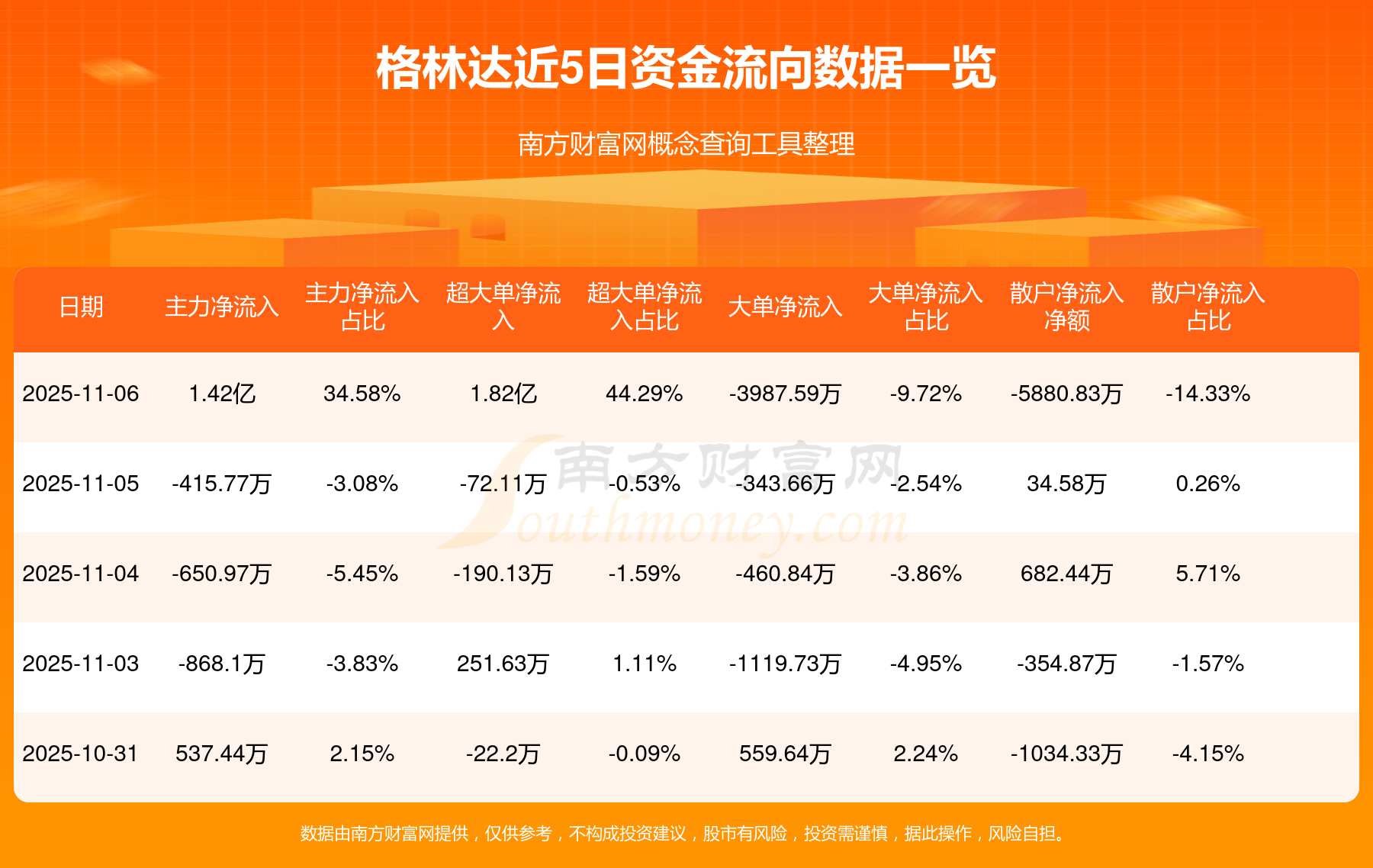 近5日資金流向一覽見下表: