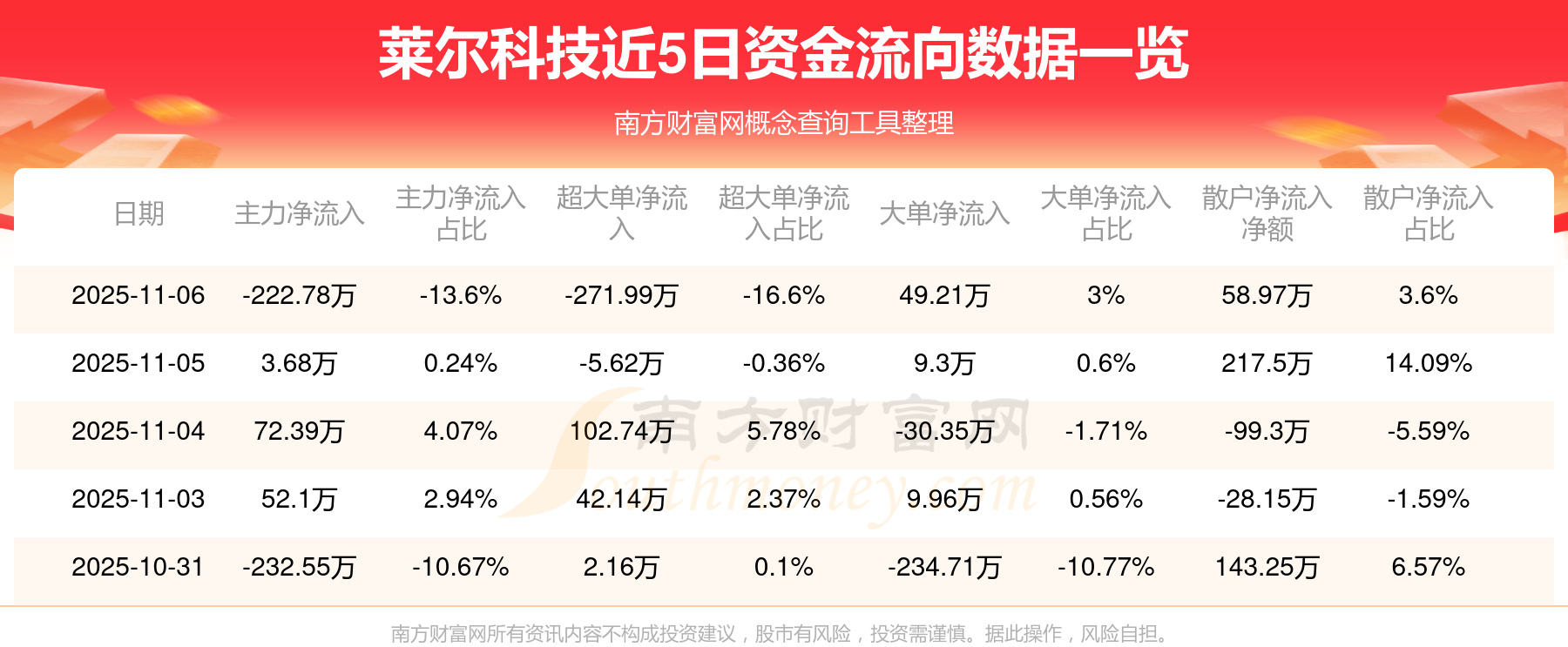 近5日資金流向一覽見下表: