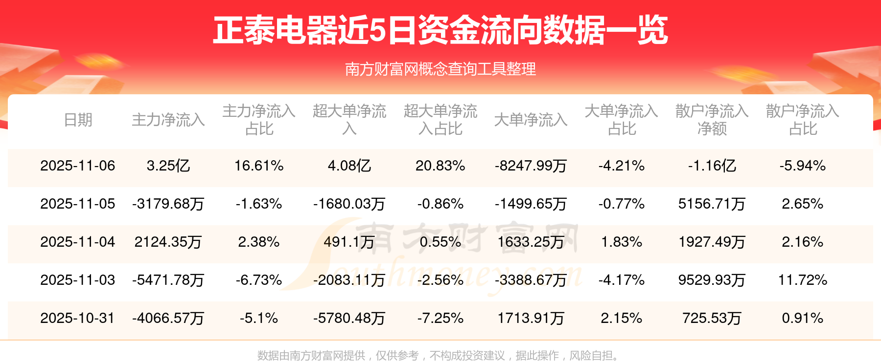 11月6日消息,正泰電器資金凈流入3.25億元,超大單資金凈流入4.08億元,換手率4.28%,成交金額30.51億元。