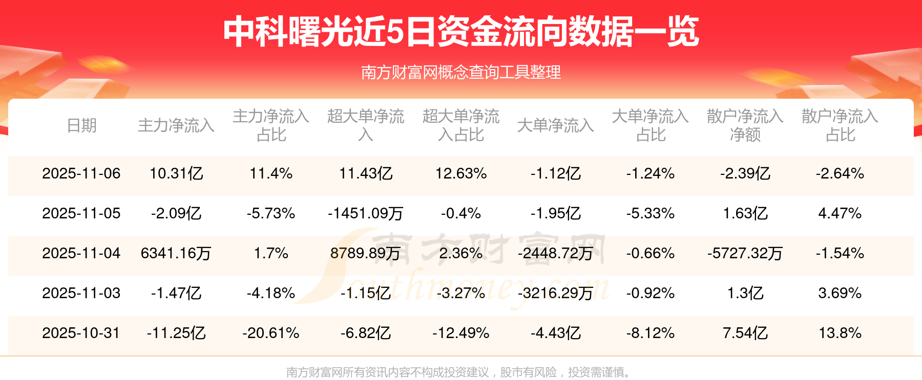 11月6日消息,中科曙光資金凈流入10.31億元,超大單資金凈流入11.43億元,換手率2.16%,成交金額35.22億元。