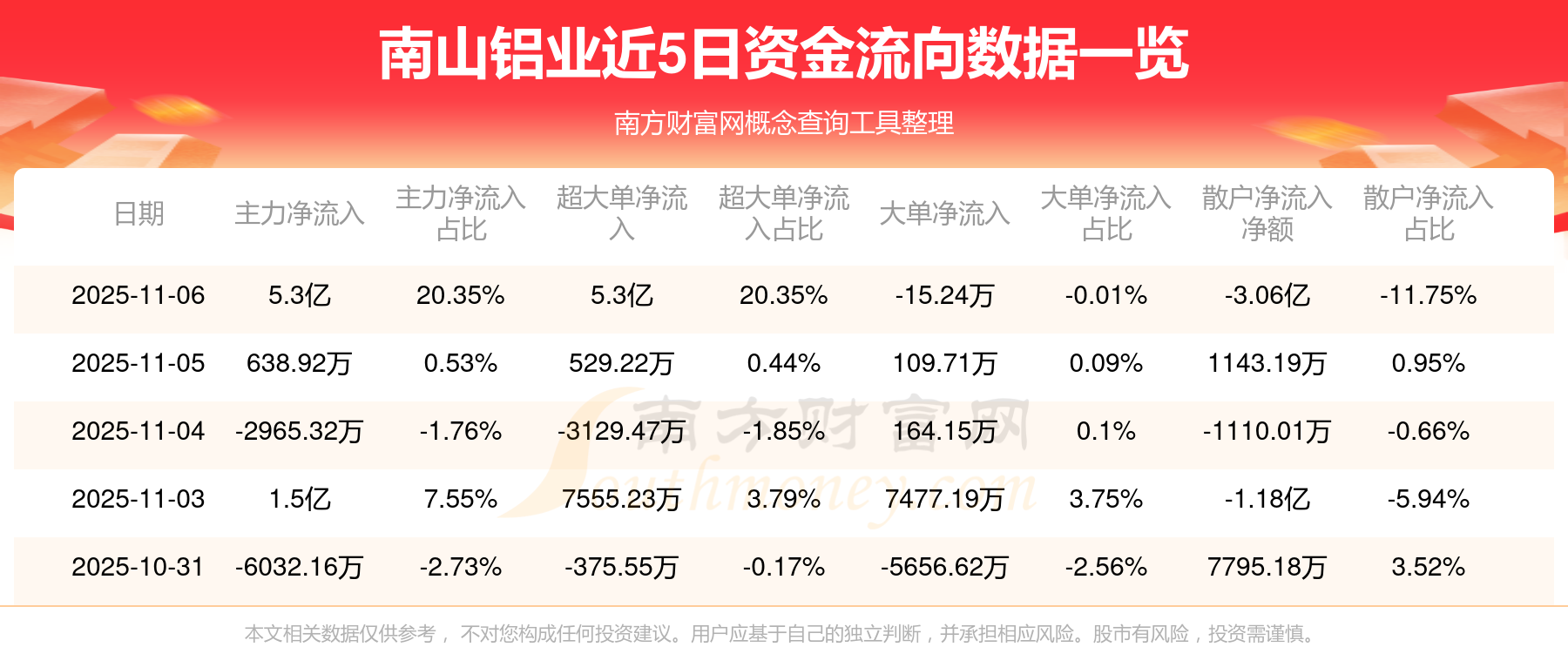 數(shù)據(jù)由南方財(cái)富網(wǎng)提供,僅供參考,不構(gòu)成投資建議,據(jù)此操作,風(fēng)險(xiǎn)自擔(dān)。股市有風(fēng)險(xiǎn),投資需謹(jǐn)慎。