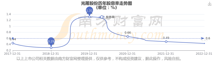 近年光莆股份年度股息率走勢如下圖: