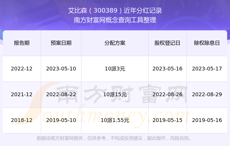 一、艾比森(300389)股票分紅記錄