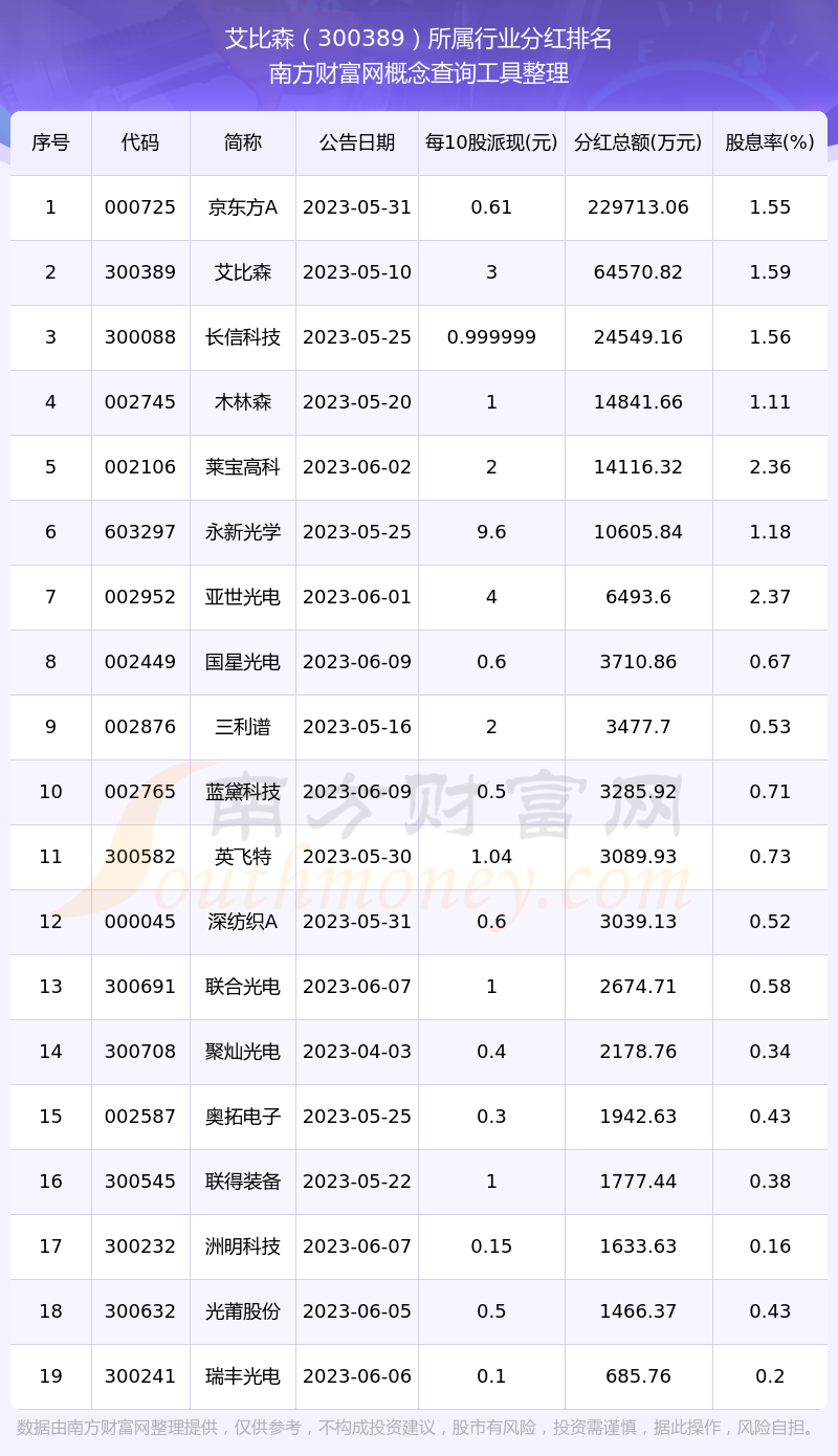 二、艾比森300389行業(yè)分紅排名