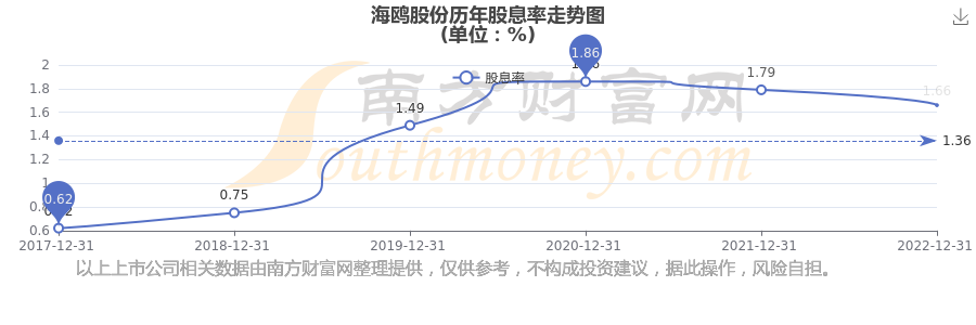 近年海鷗股份年度股息率走勢(shì)如下圖: