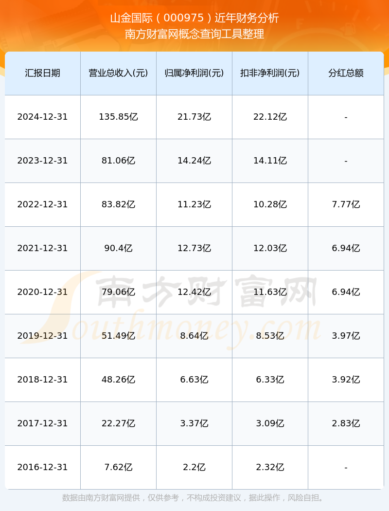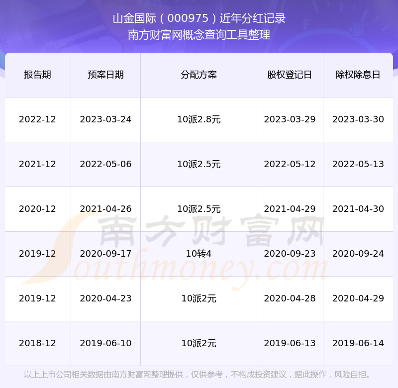 山金國際歷年分紅派息情況如下表所示: