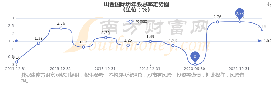 山金國際歷年股息率走勢如下圖: