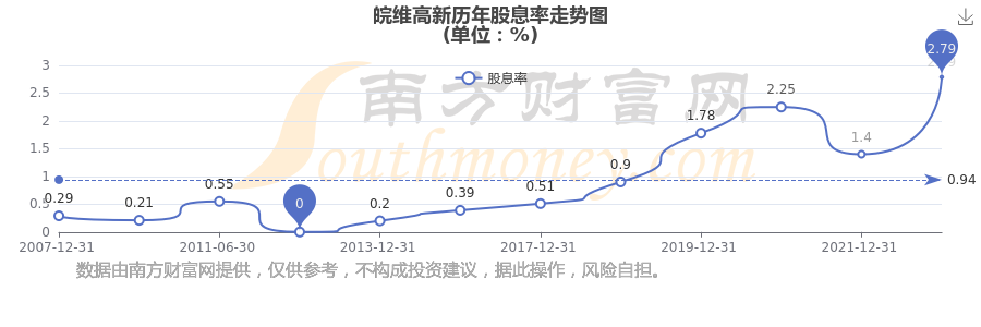 近年皖維高新年度股息率走勢(shì)如下圖: