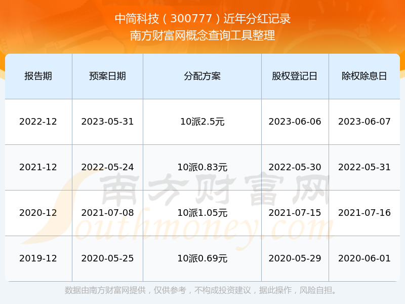 一、中簡(jiǎn)科技(300777)股票分紅記錄