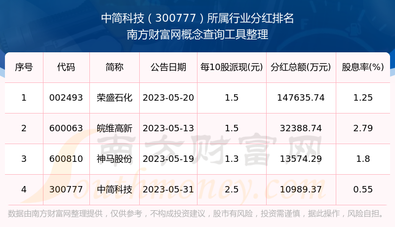 二、中簡(jiǎn)科技300777行業(yè)分紅排名