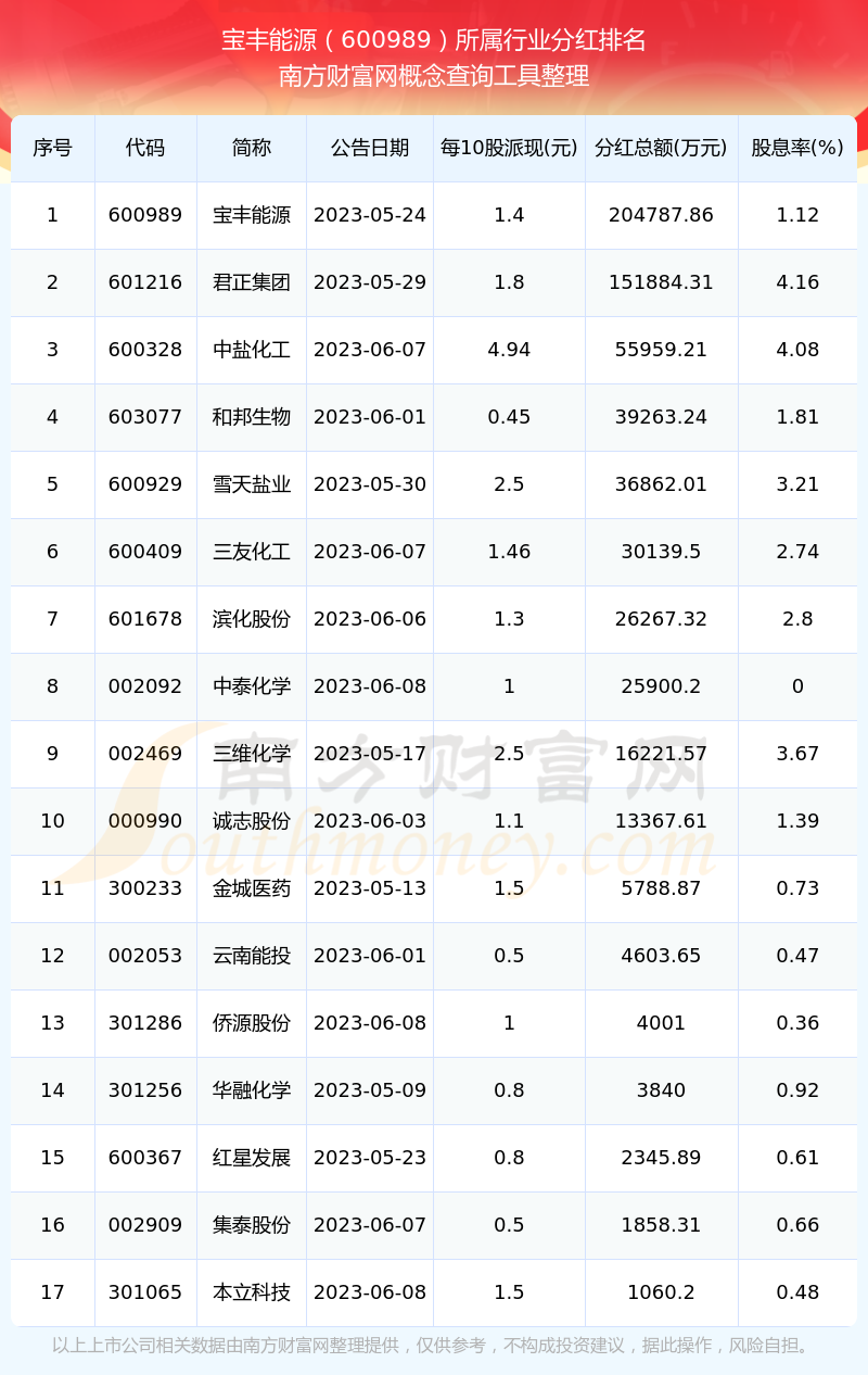 按照南方財(cái)富網(wǎng)趨勢(shì)選股系統(tǒng)統(tǒng)計(jì),寶豐能源所屬行業(yè)為煤制烯烴行業(yè),煤制烯烴行業(yè)分紅排名情況如下表: