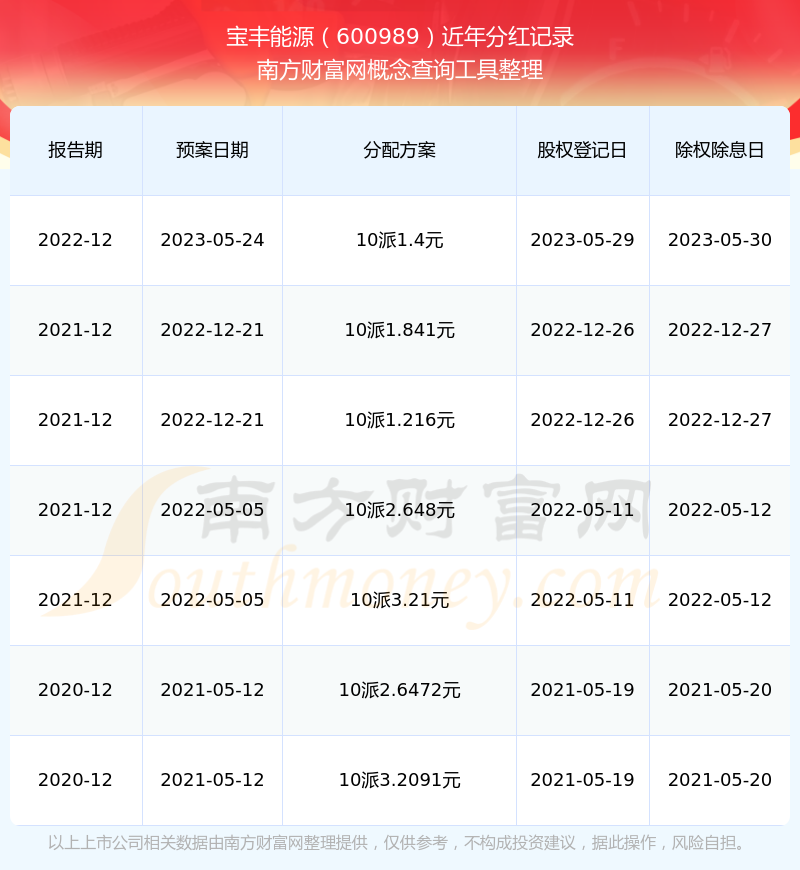 近年寶豐能源分紅派息情況如下表所示: