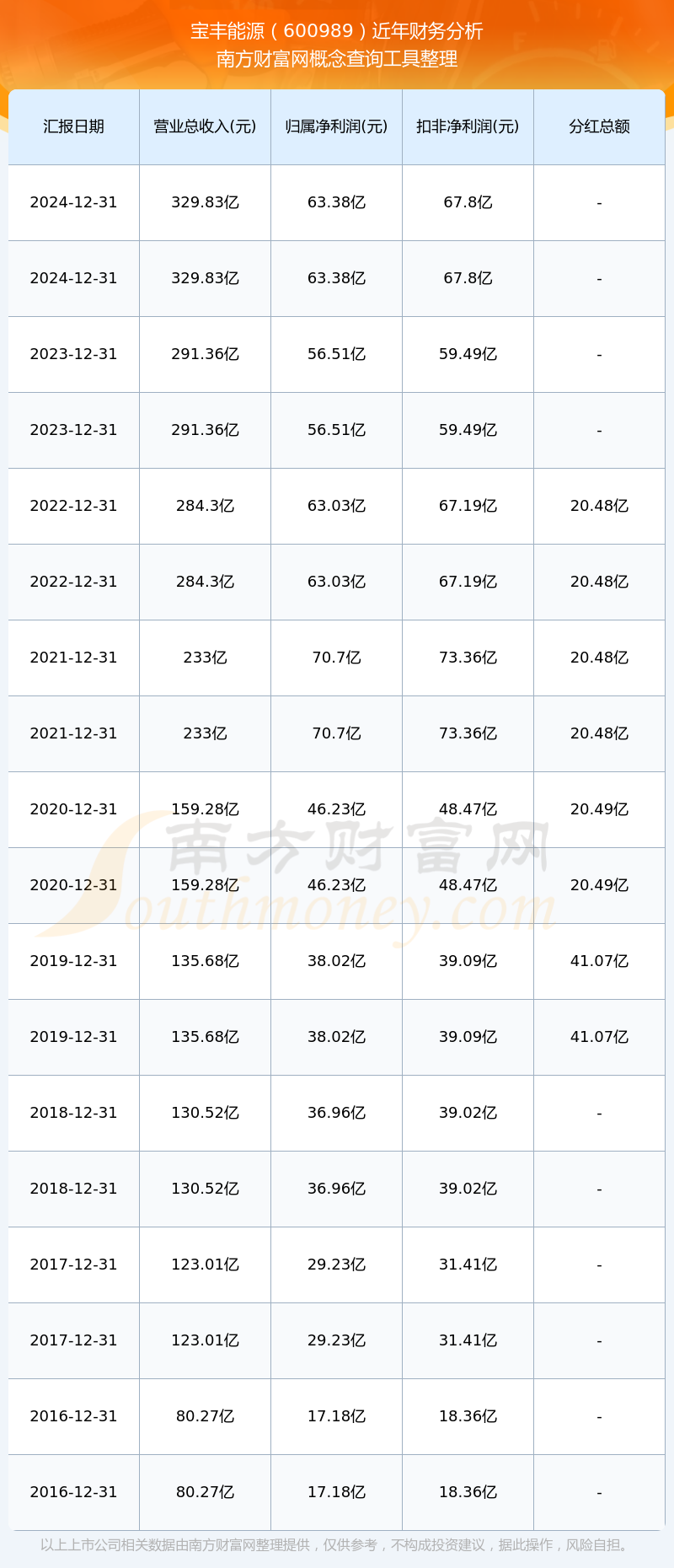 寶豐能源公司2024年實現(xiàn)營業(yè)收入329.83億元,同比增長13.21%;凈利潤63.38億元,同比增長12.16%;毛利率33.15%。