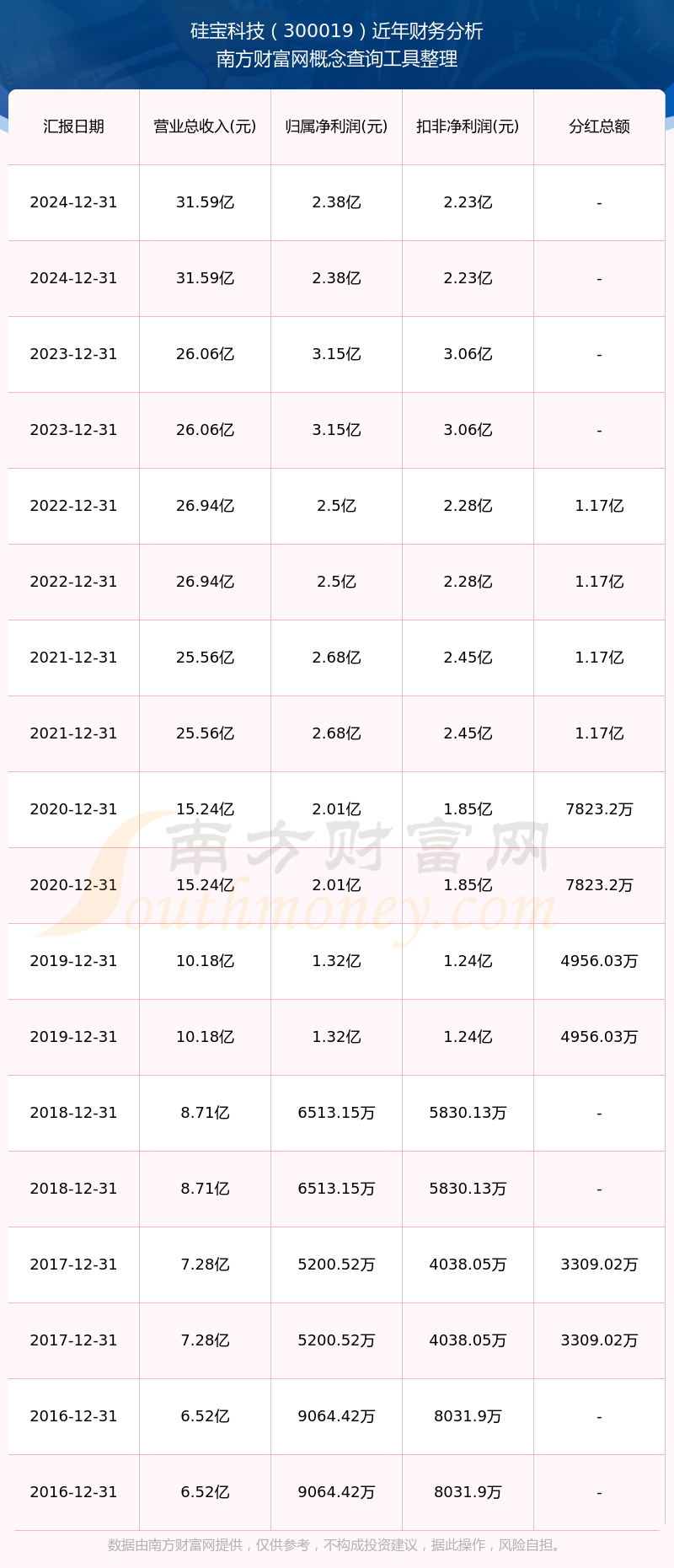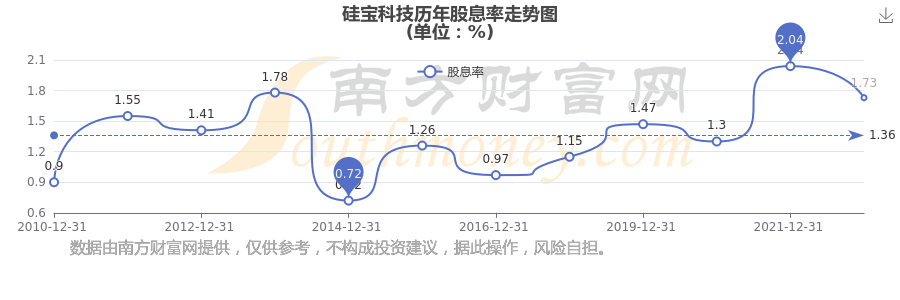 硅寶科技?xì)v年分紅派息情況如下表所示: