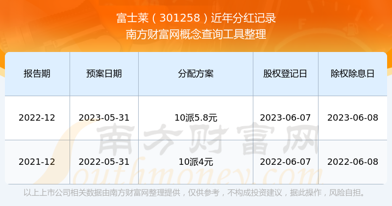 富士萊最新一次公布的分紅方案:10派5.8元。