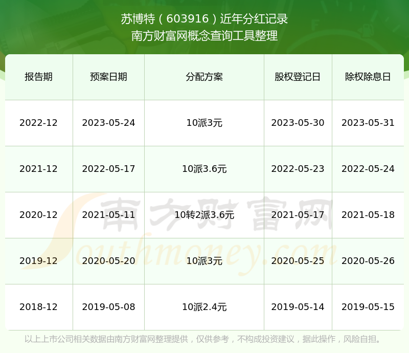 蘇博特最新一次公布的分紅方案為10派3元。本次權(quán)益分派股權(quán)登記日為2023年5月30日,除權(quán)除息日為2023年5月31日,派息日為2023年5月31日。
