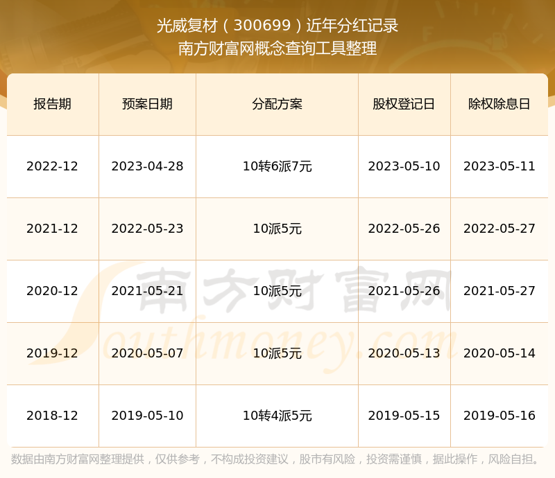 光威復(fù)材最新一次公布的分紅方案為10轉(zhuǎn)6派7元。本次權(quán)益分派股權(quán)登記日為2023年5月10日,除權(quán)除息日為2023年5月11日,派息日為2023年5月11日。
