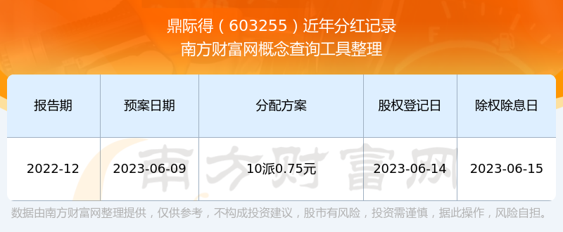 鼎際得最新一次公布的分紅方案:10派0.75元。
