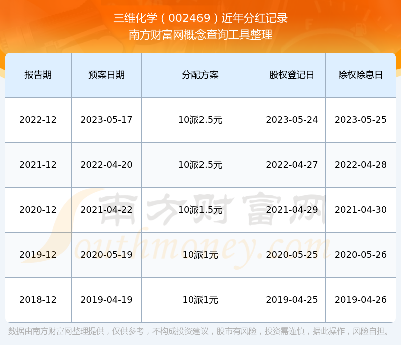 三維化學(xué)最新一次公布的分紅方案:10派2.5元。