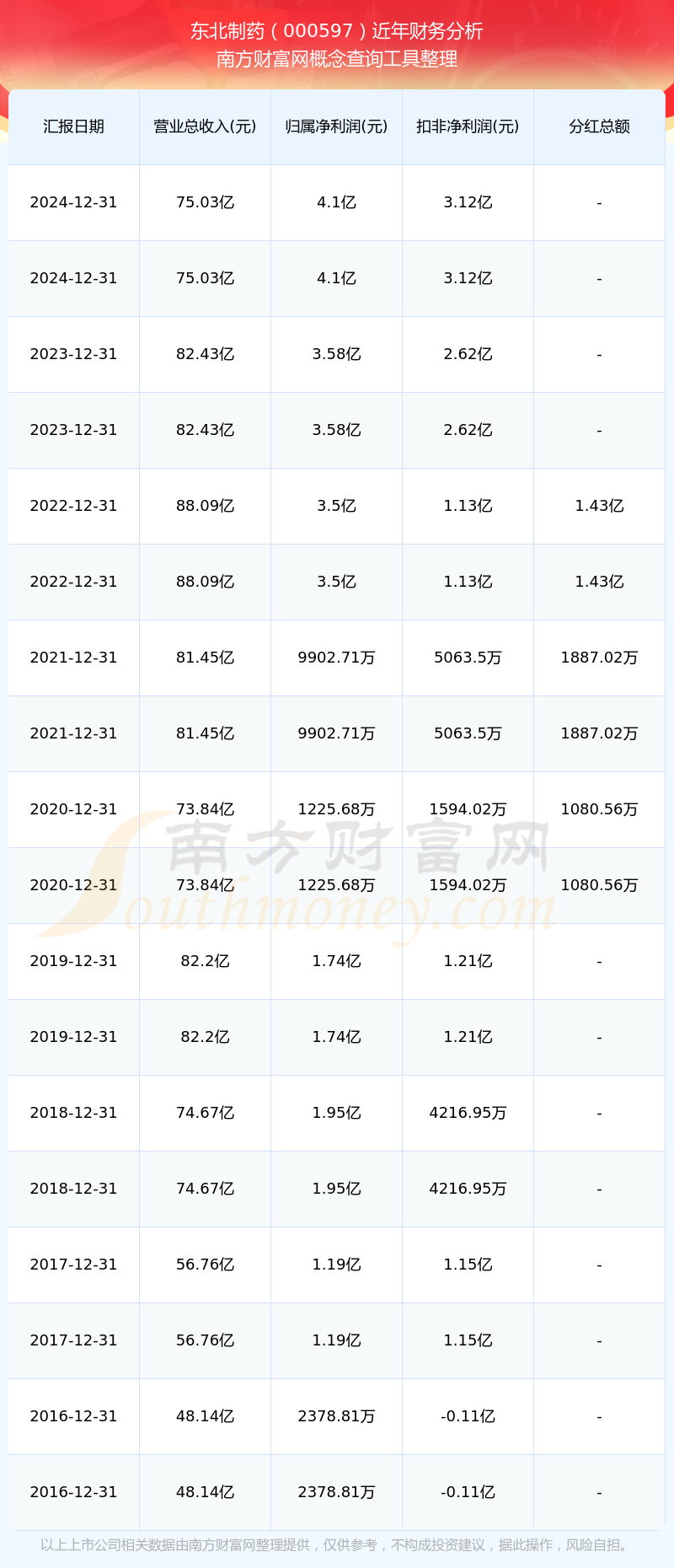 近年?yáng)|北制藥分紅派息情況如下表所示: