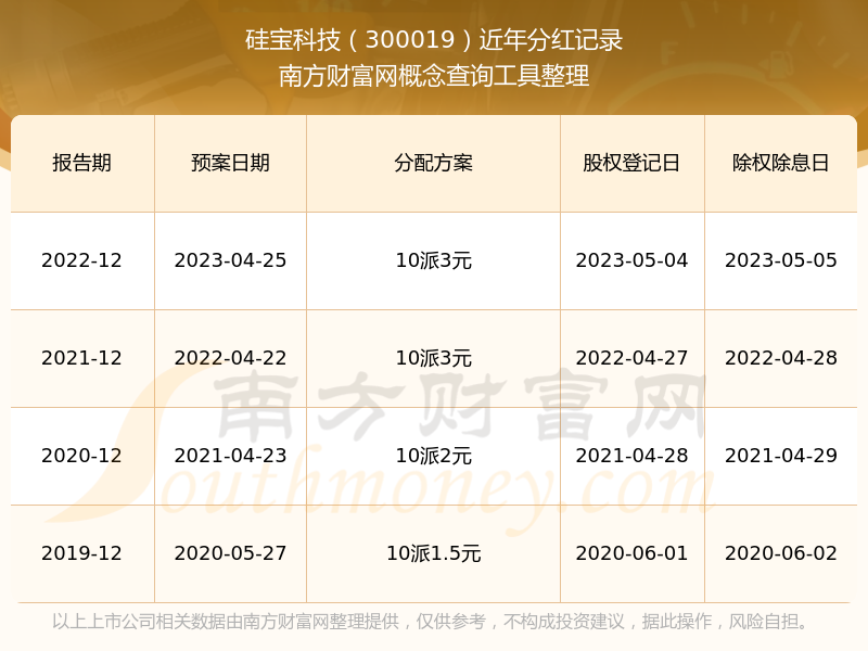 硅寶科技最新一次公布的分紅方案:10派3元。