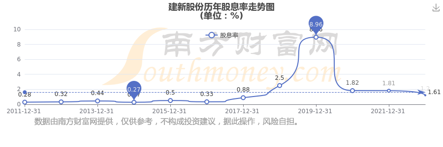 建新股份最新一次公布的分紅方案:10派0.6元。