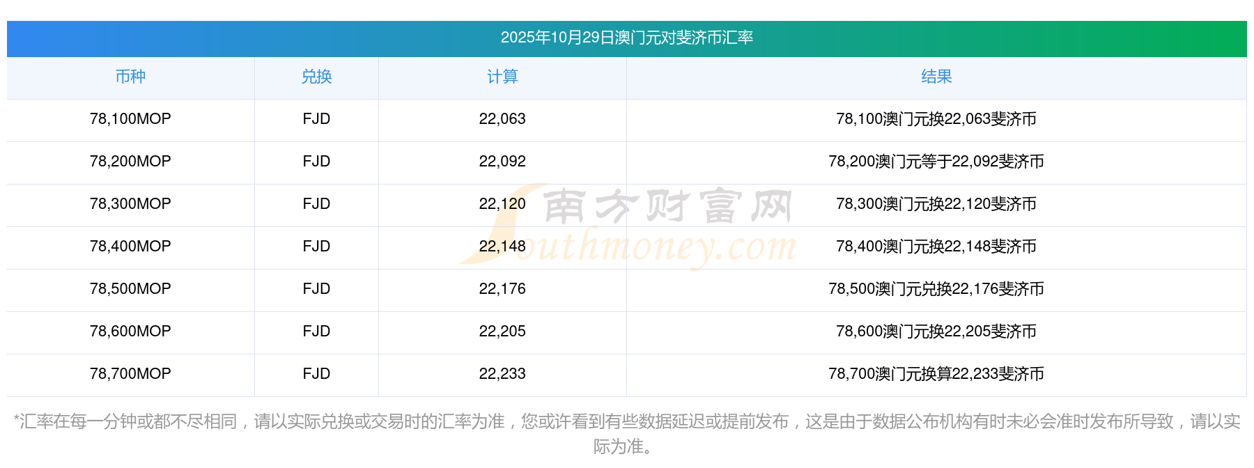 匯率換算查詢今天澳門元兌斐濟(jì)幣是多少10-29