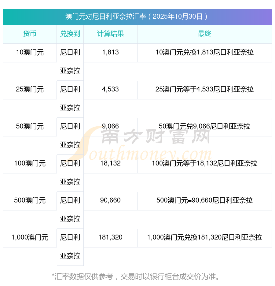 南方財富網(wǎng)為您提供澳門元對尼日利亞奈拉匯率最新價格詳情。
