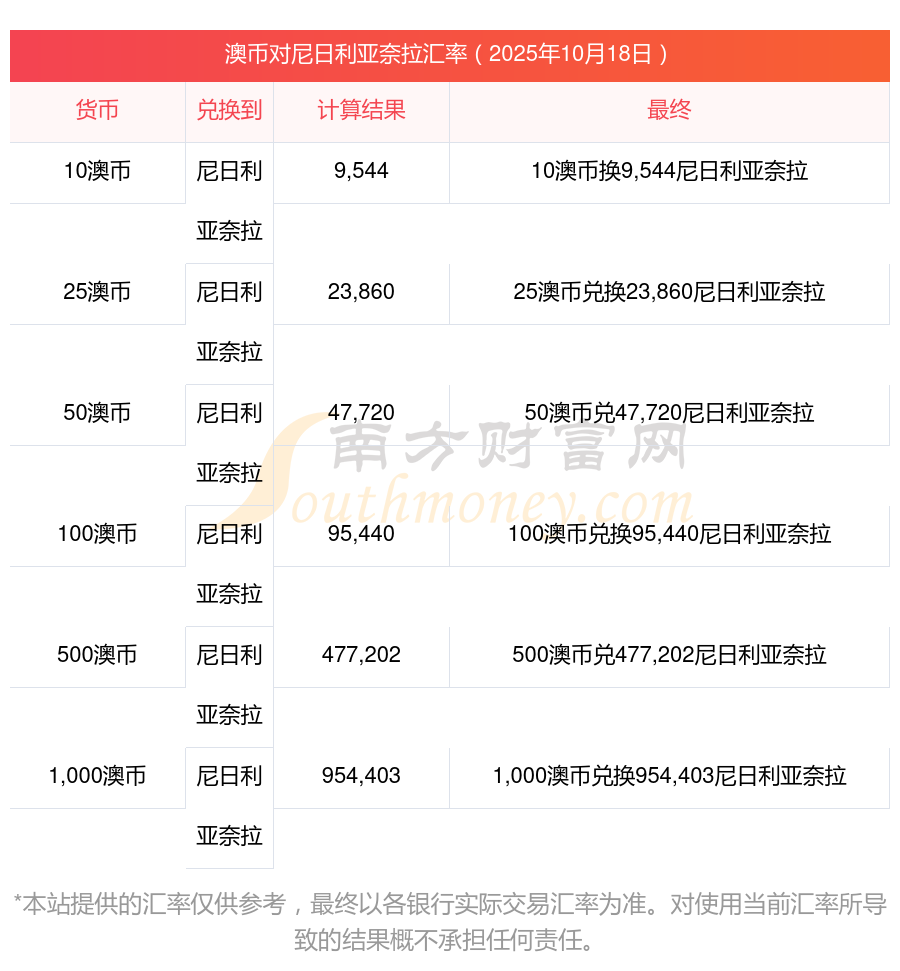 南方財(cái)富網(wǎng)為您提供澳幣對(duì)尼日利亞奈拉匯率最新價(jià)格詳情。