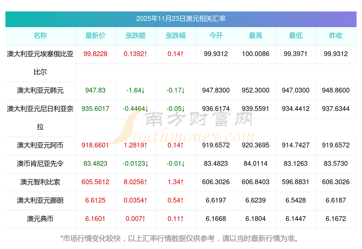 根據今天2025年11月23日匯率計算,AUD兌換CZK匯率最新價13.570000,今開價13.5848,昨收價13.5700,最高價13.6118,最低價13.4916。