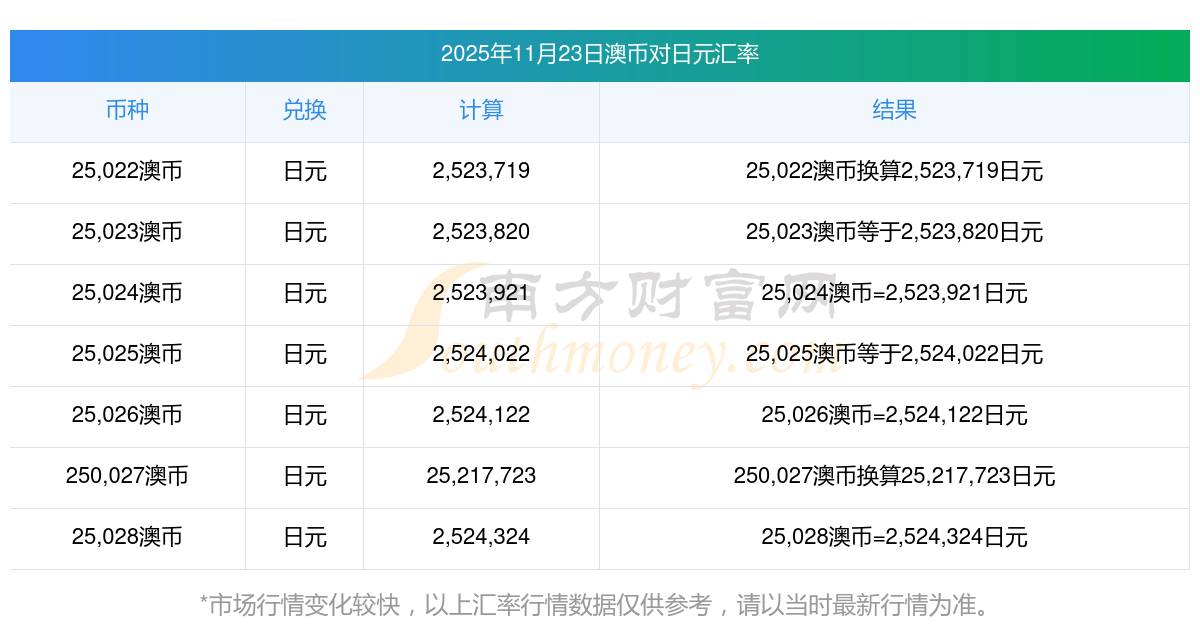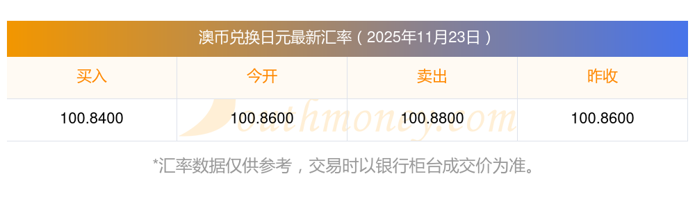 今天匯率查詢:144澳幣兌日元匯率又是多少?2025/11/23