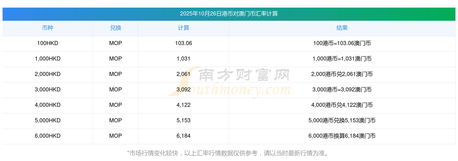 今天匯率行情_6港幣換成澳門幣是多少(10月26日)
