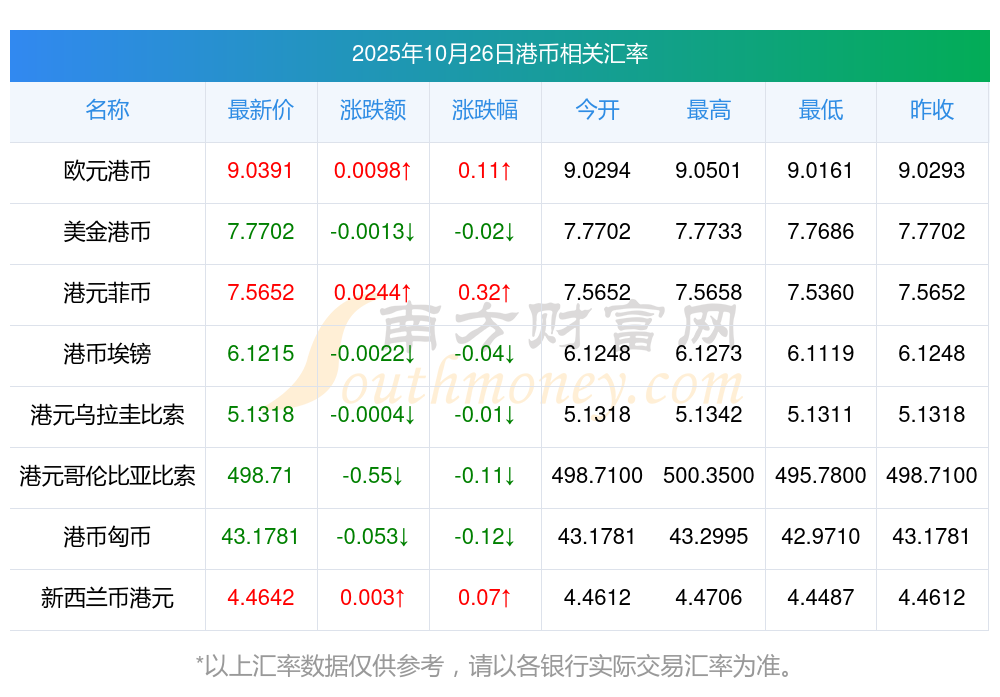 南方財富網(wǎng)為您提供港幣對新幣匯率最新價格詳情。