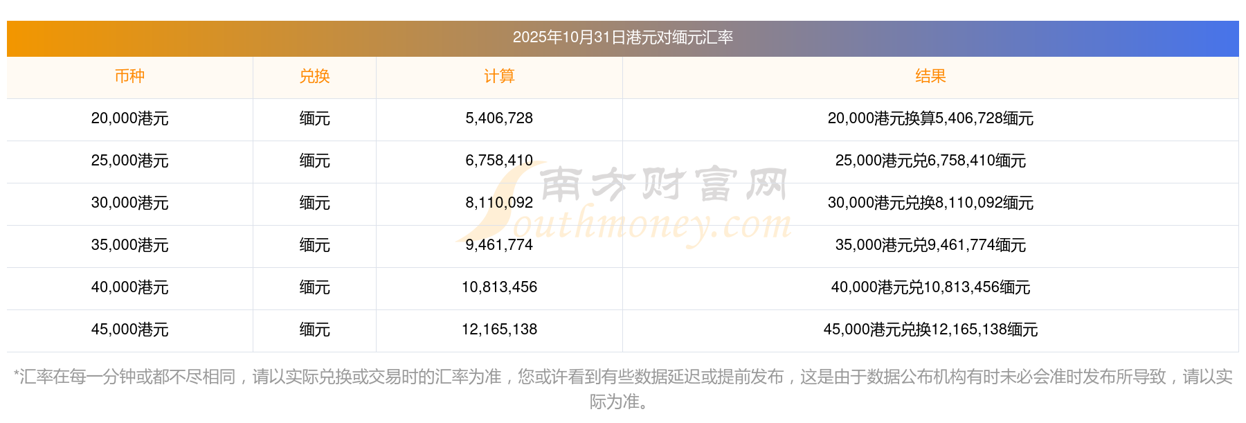 今5港元兌換緬元的匯率是多少 附查詢方法10-31