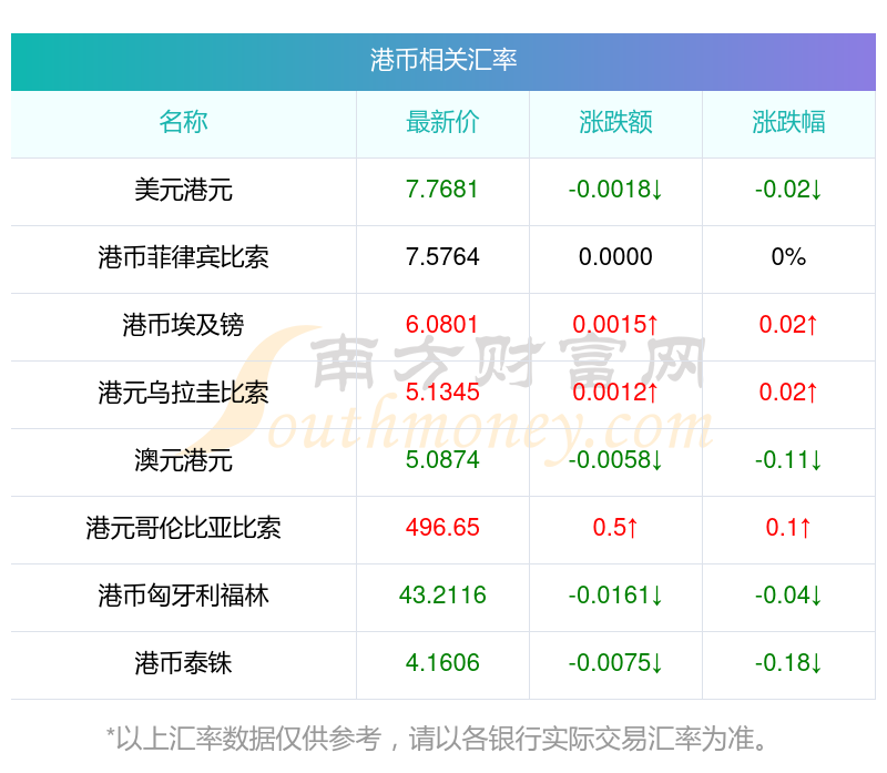 2025年10月31日港幣相關(guān)匯率查詢