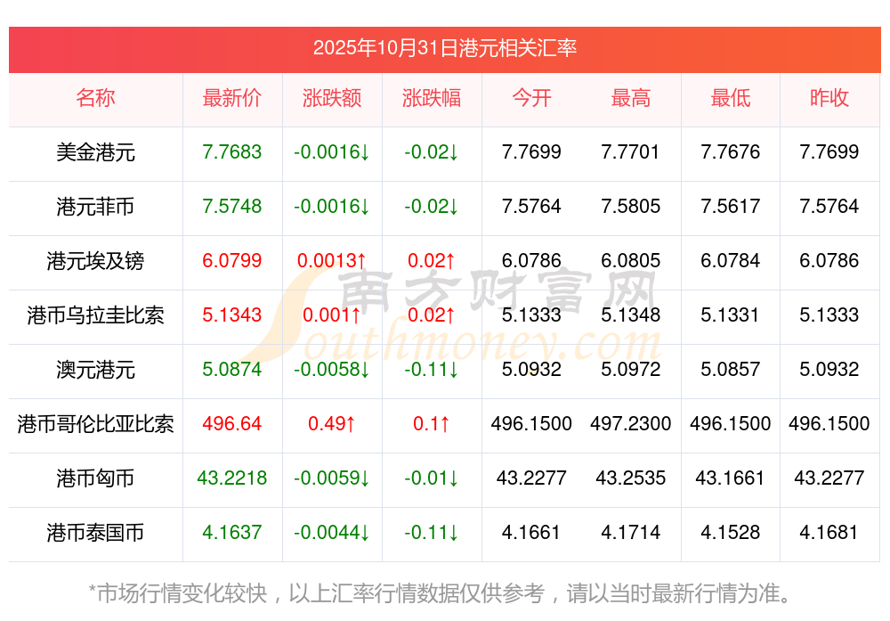 2025年10月31日港元對尼日利亞奈拉匯率價格查詢