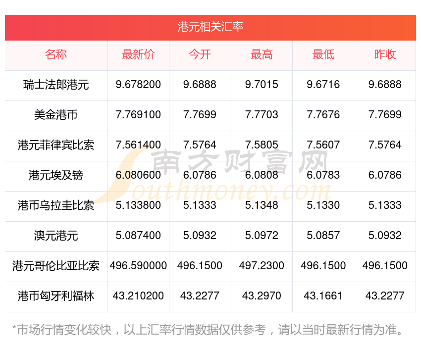 2025年10月31日港元相關(guān)匯率查詢