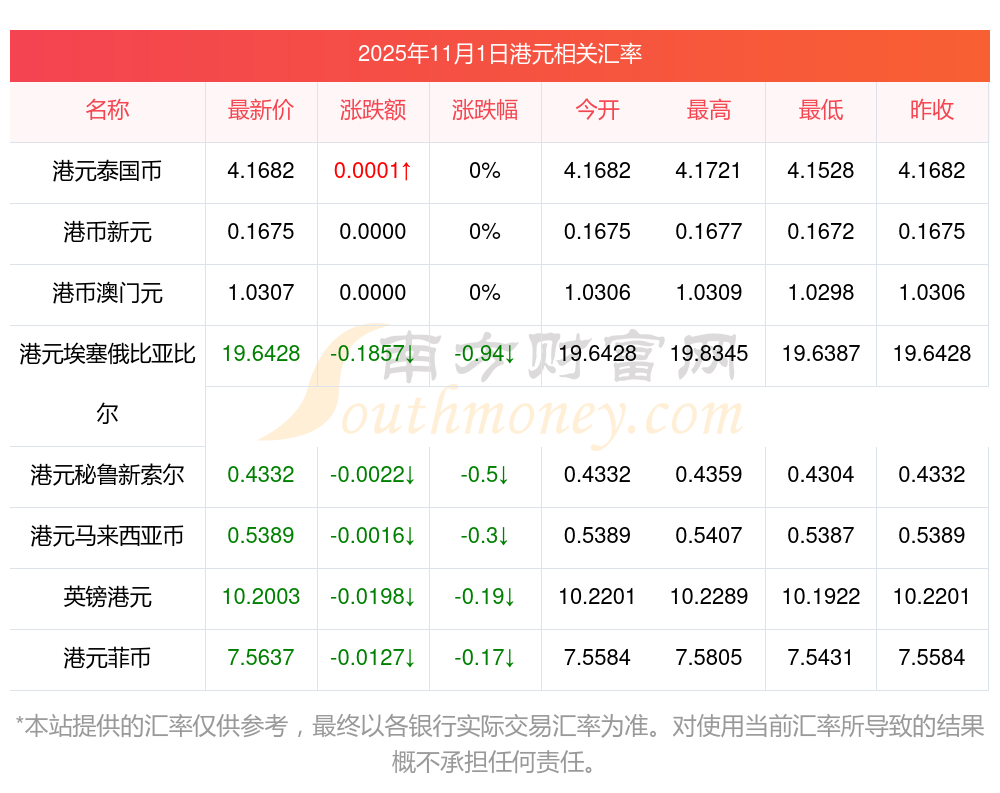 2025年11月1日最新消息,港元兌換埃塞俄比亞比爾最新匯率為19.642800,今開為19.6428,昨收為19.6428,最高為19.8345,最低為19.6387。