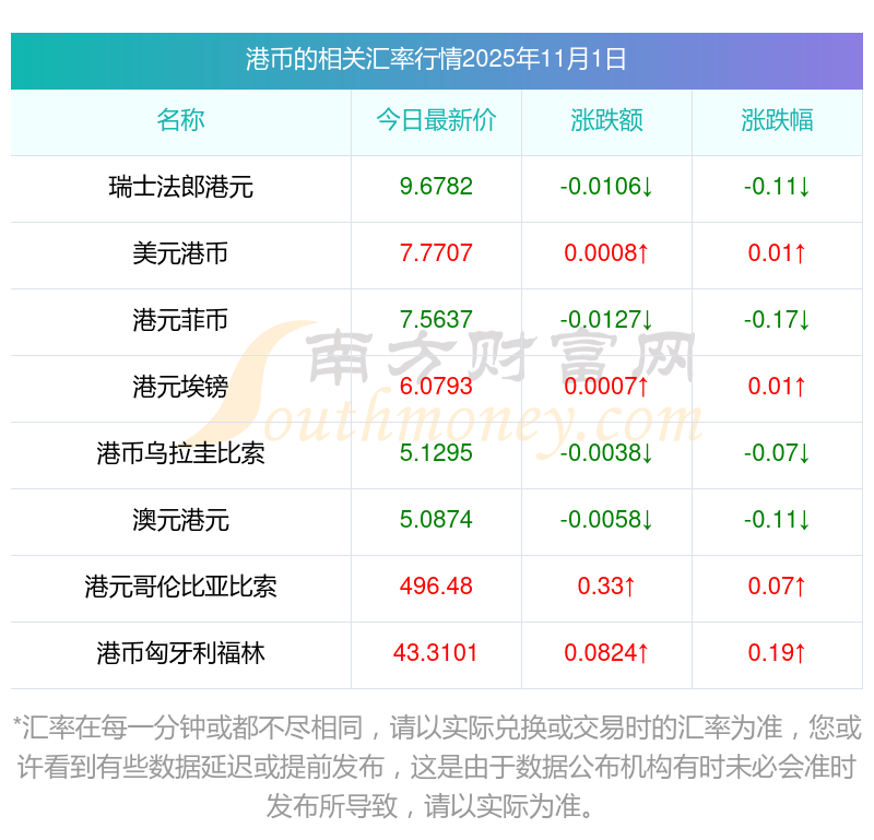 根據(jù)2025年11月1日匯率,港幣兌換人民幣匯率最新價(jià)0.915930,今開(kāi)價(jià)0.9159,昨收價(jià)0.9159,最高價(jià)0.9161,最低價(jià)0.9151。