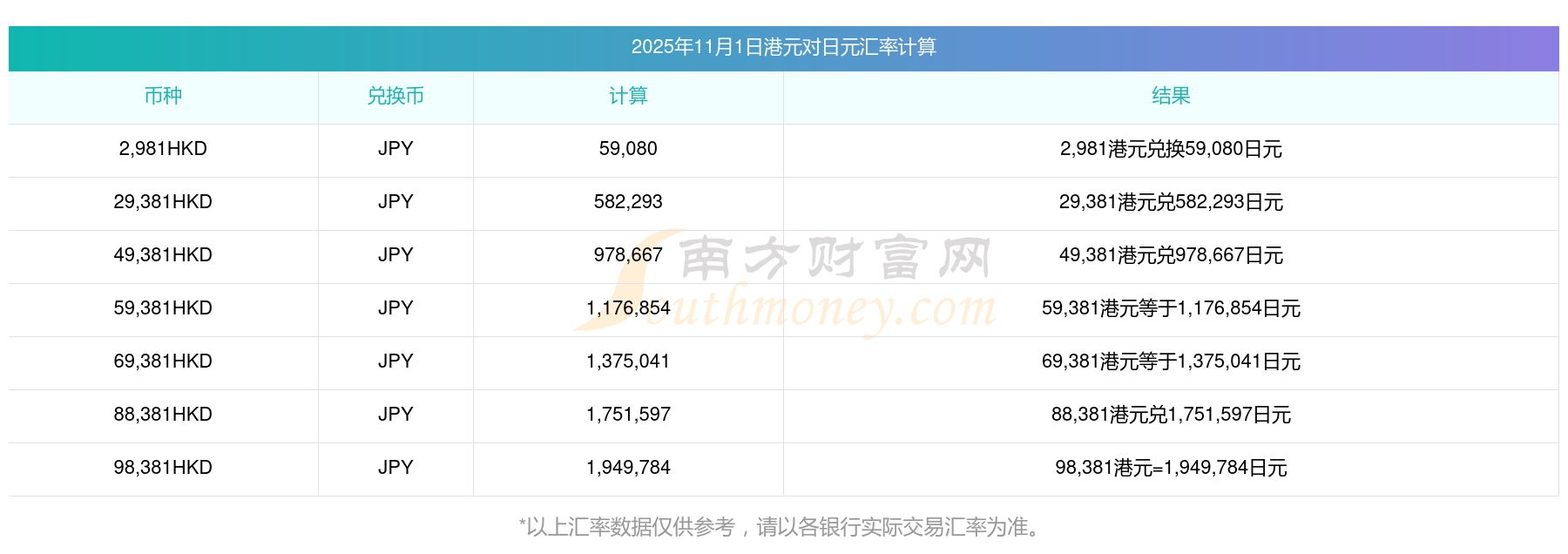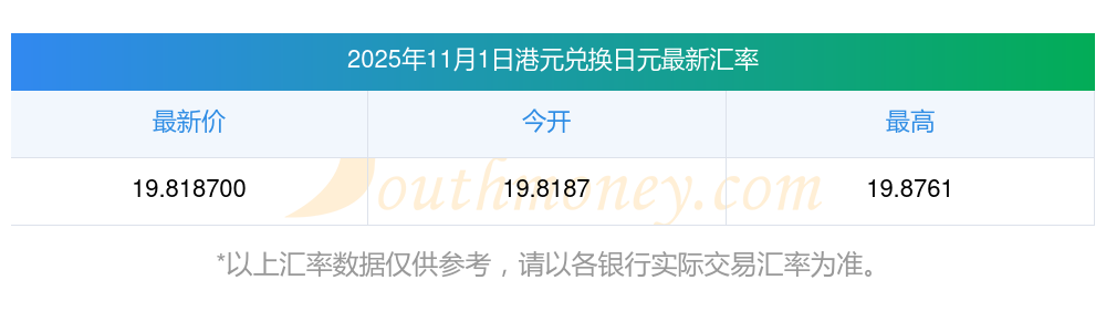 日元今日匯率實時查詢 119港元對日元匯率2025/11/01