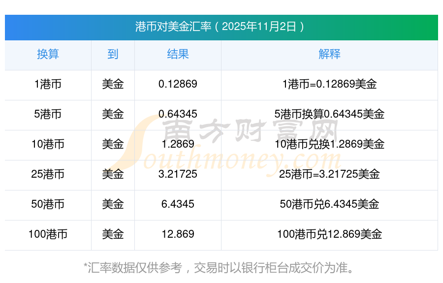 現(xiàn)在1港元與美元的匯率是多少?2025-11-2
