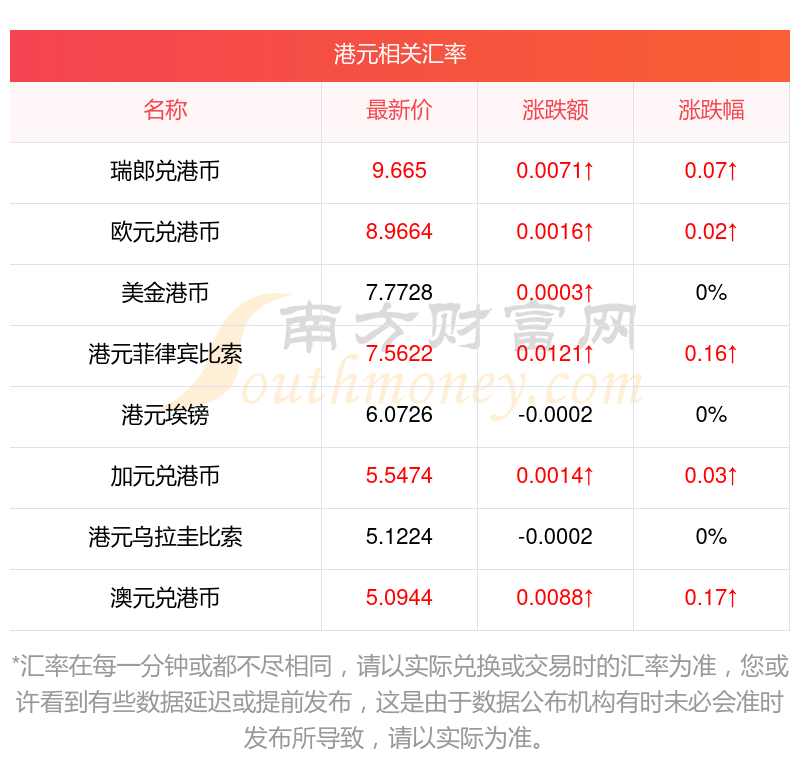 南方財富網(wǎng)為您提供港元對澳門幣匯率最新價格詳情。