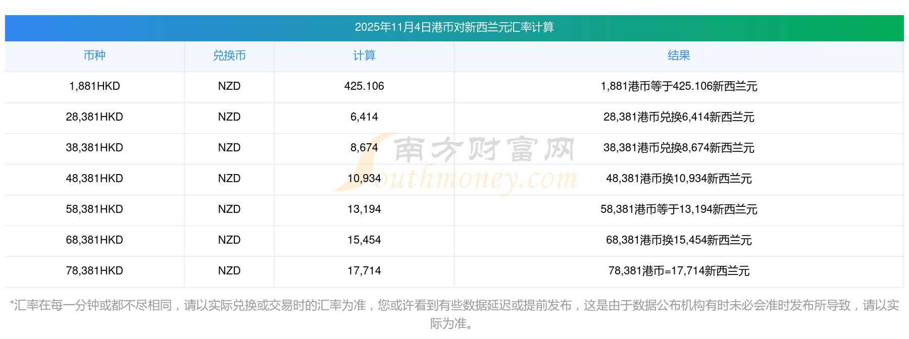 今日匯率查詢|港幣兌換新西蘭元最新查詢2025/11/04
