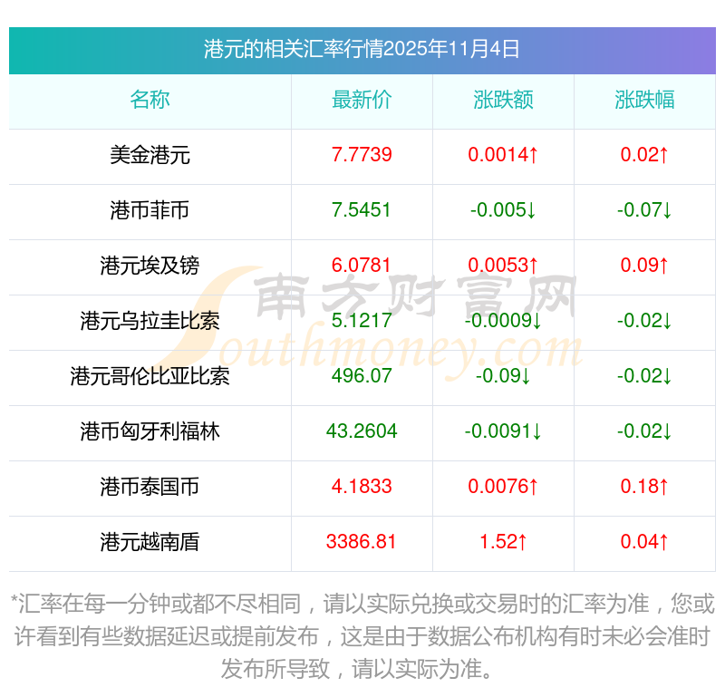 2025年11月4日港元相關(guān)匯率查詢