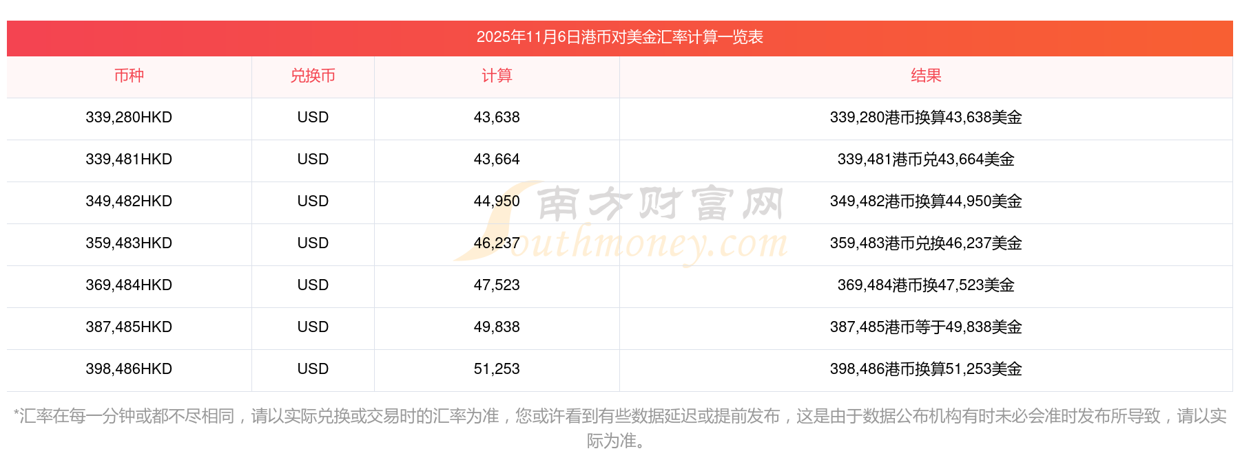 南方財富網為您提供港幣對美金匯率最新價格詳情。