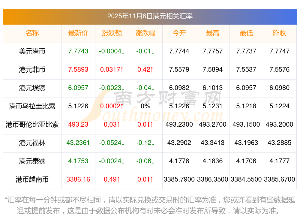 2025年11月6日港元相關(guān)匯率查詢