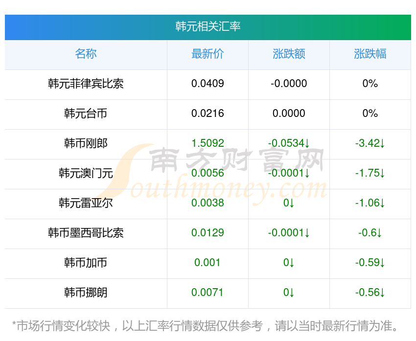 南方財(cái)富網(wǎng)為您提供韓元對(duì)雷亞爾匯率最新價(jià)格詳情。